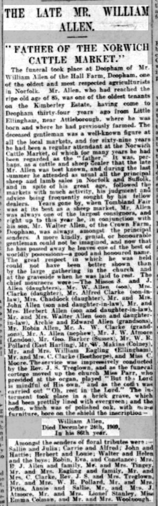 The Eastern Evening News of January 3rd 1910 carried the following tribute:-