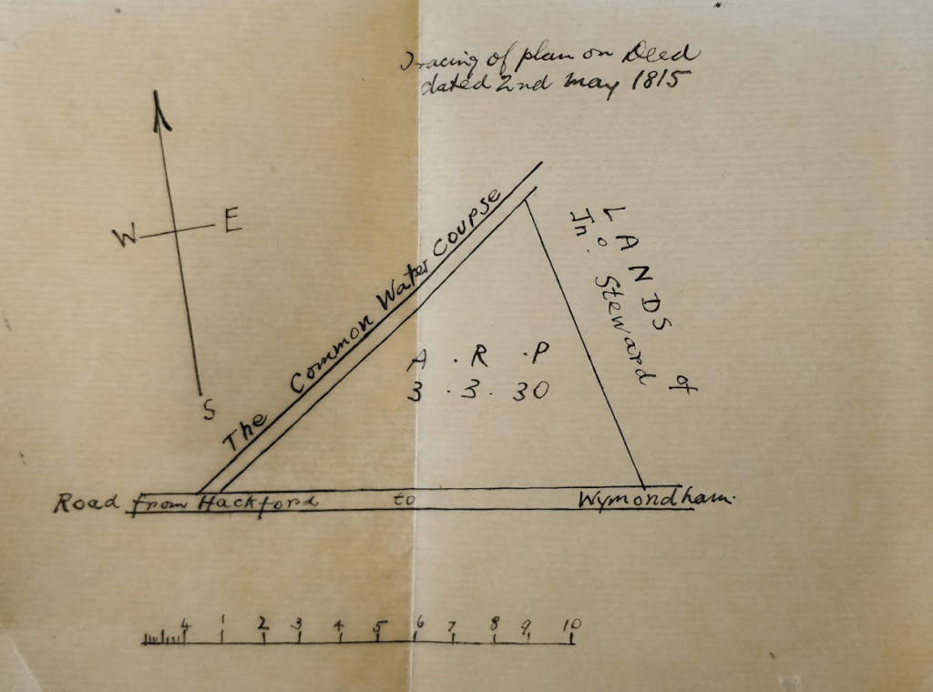 The 1815 Survey of Deopham refers to the fact that the Common Allotment North of Hackford Road was sold to “Revd George Hewitt & John Steward Esqr“. The “Common Allotment west of Hackford Road” was sold to Revd George Hewitt.