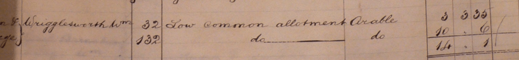 The detailed analysis of this 1843 survey shows that these 14 acres were made up of plots 32 and 132, both now called “Low Common Allotment”: